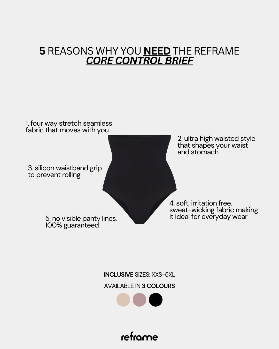 - High waisted brief for full stomach coverage